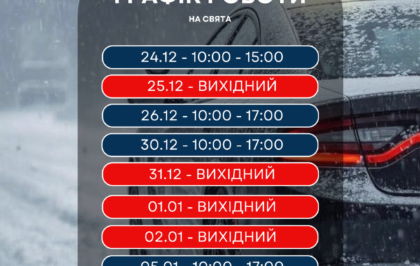 Шановні клієнти! Публікуємо актуальний графік роботи на новорічні свята. З 05.01.2024 продовжуємо працювати в звичному режимі з…
